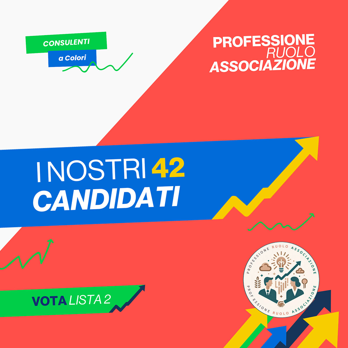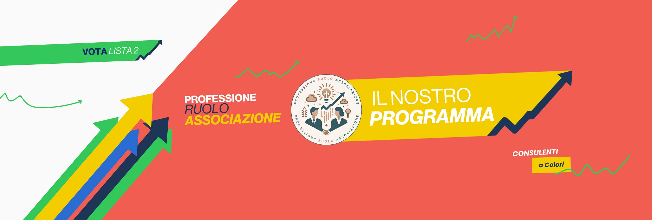 Abbiamo l’esperienza dei veterani e la freschezza delle nuove idee, contiamo su colleghi e colleghe giovani e di talento e proprio le diverse idee e i continui confronti ci hanno portato a creare il concetto di “consulenti a colori”, perché ogni sfumatura e tonalità ha avuto voce nella realizzazione del nostro programma.
